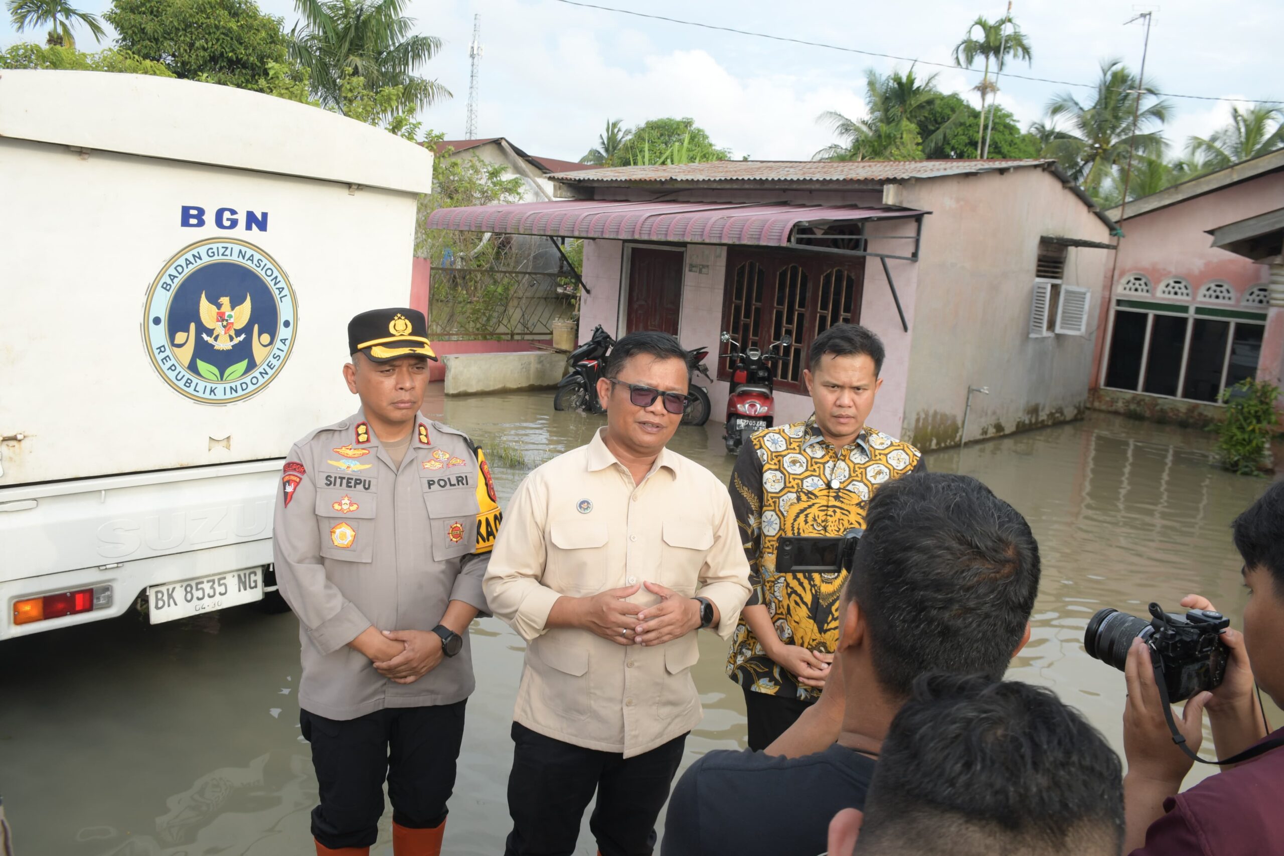 5.000 Paket Makan Bergizi Dibagikan, Deputi BGN RI,Kapolres dan Wabup Sergai Tinjau Banjir di Tanjung Beringin