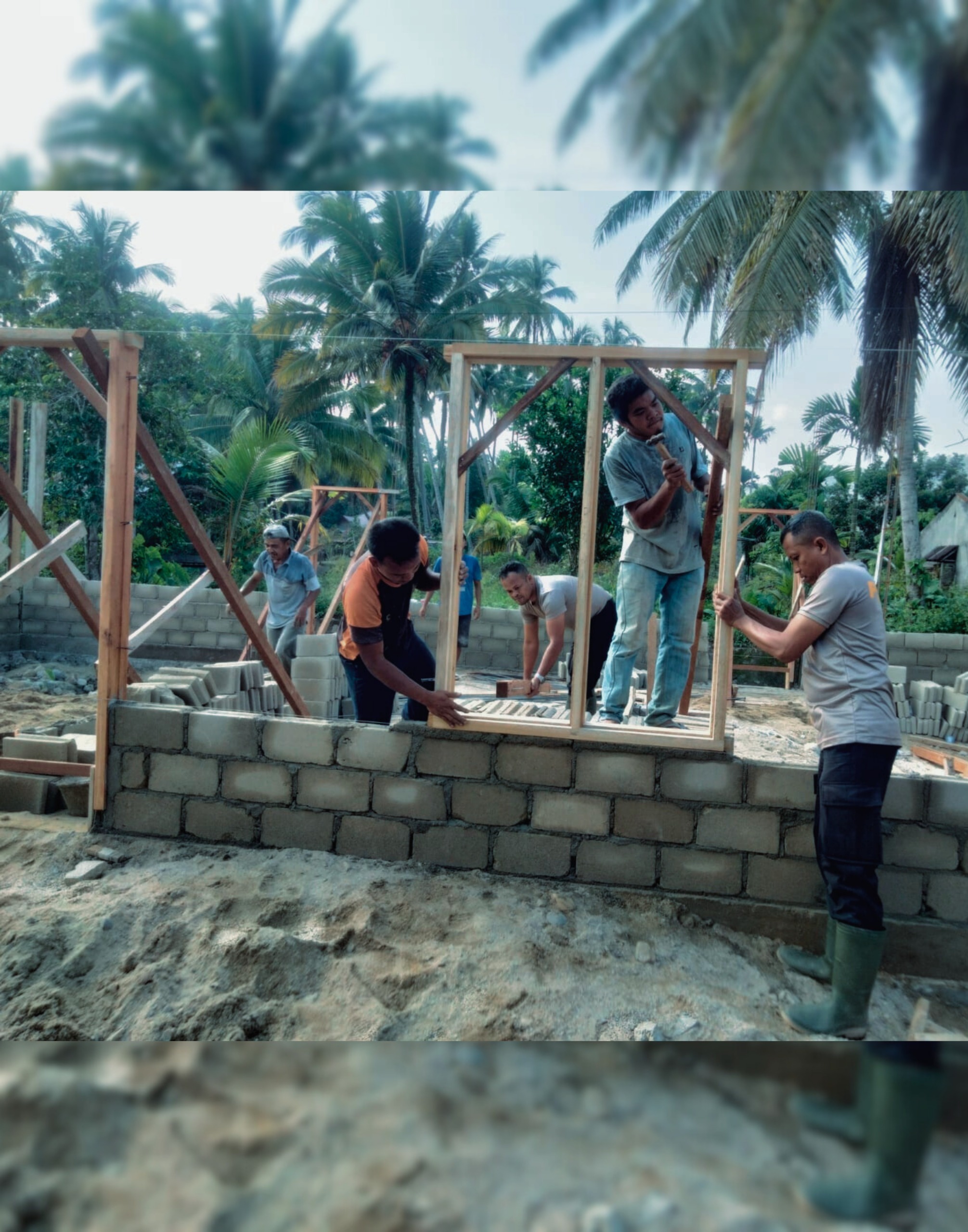 Mereka terlibat langsung dalam pekerjaan fisik, memastikan setiap tahapan pembangunan berjalan lancar agar rumah dapat segera ditempati secara aman dan layak.