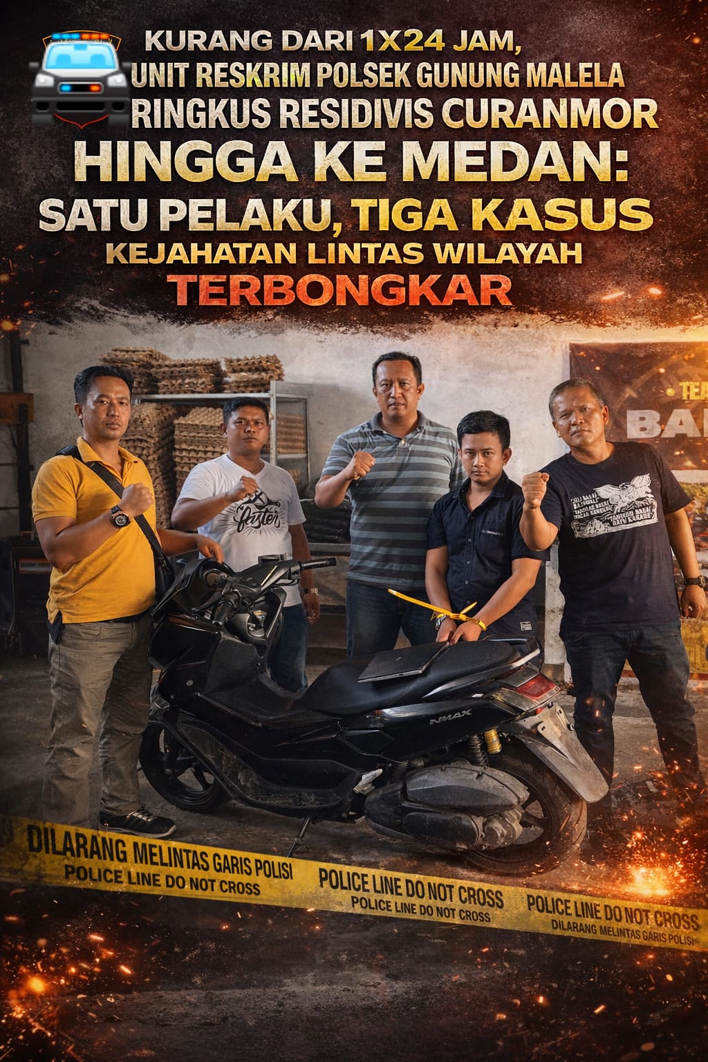 Dalam waktu kurang dari 24 jam sejak laporan diterima, seorang residivis pelaku pencurian kendaraan bermotor (curanmor) berhasil diringkus di Kota Medan.