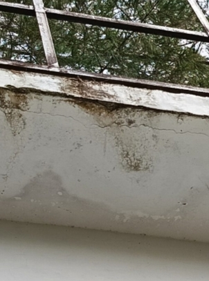Namun, kondisinya sudah seperti bangunan tua cat putihnya memudar, dan besi tulangan di lantai dua mulai terlihat keluar dari permukaan beton.