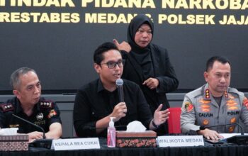 METROSERGAI.COM, Medan- Suasana Jalan Jenderal Ahmad Yani (Kesawan) yang merupakan jantung bersejarah Kota Medan, berubah menjadi lautan merah yang bercahaya.