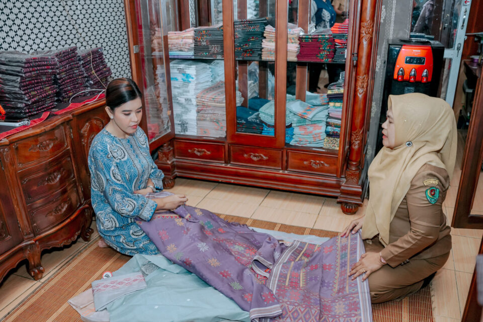 Ketua Dewan Kerajin an Nasional Daerah (Dekranasda) Sumatera Utara (Sumut) Kahiyang Ayu, mengunjungi ‘Rumah Tenun Nadira’ di Jalan Imam Bonjol, Kota Padangsidimpuan, Selasa (19/8/2025). (Diskominfo Sumut)