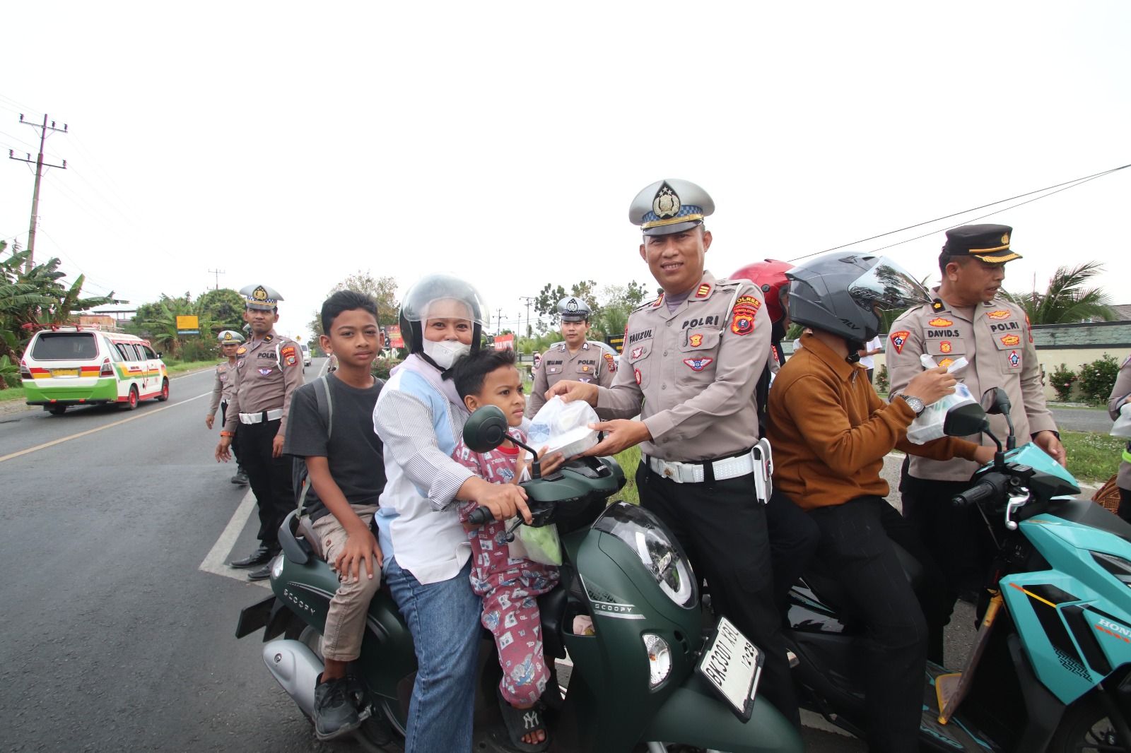Satuan Lalu Lintas (Satlantas) Polres Serdang Bedagai menggelar aksi sosial dengan membagikan 100 paket takjil kepada masyarakat dan pengendara yang melintas di Jalinsum.