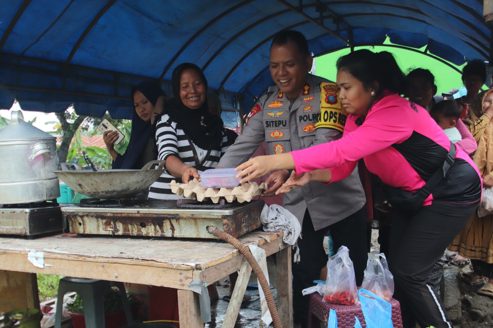 Dalam kegiatan tersebut, Polres Sergai membuka dapur umum di lokasi pengungsian serta menyalurkan sejumlah bantuan logistik bagi masyarakat.