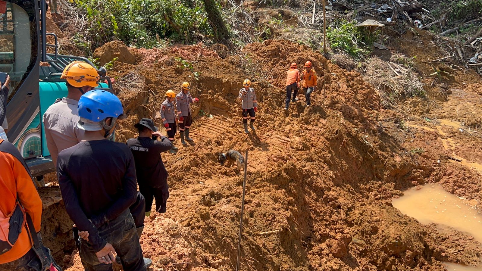 Empat ekor anjing pelacak spesialis SAR milik Polri, yakni Dassa, Rubin, Ari, dan Walet, diterjunkan untuk mendeteksi titik-titik yang berpotensi menjadi lokasi korban tertimbun.