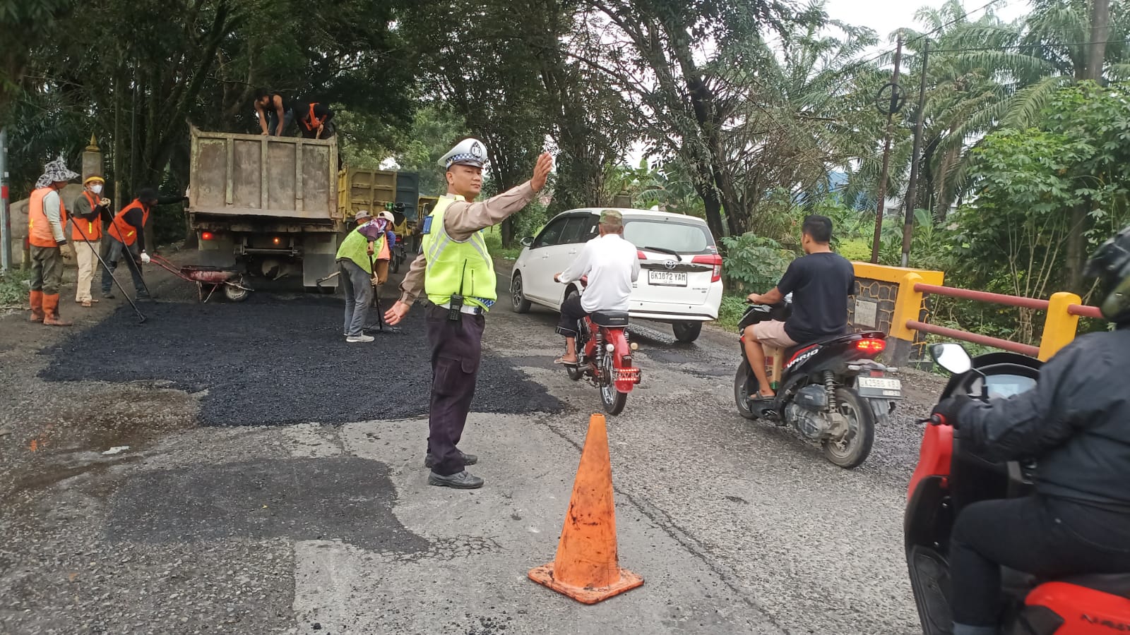 Pengaturan arus dilakukan secara intensif untuk mencegah kemacetan, sekaligus memberikan rasa aman dan nyaman bagi para pengguna jalan yang memulai aktivitas.