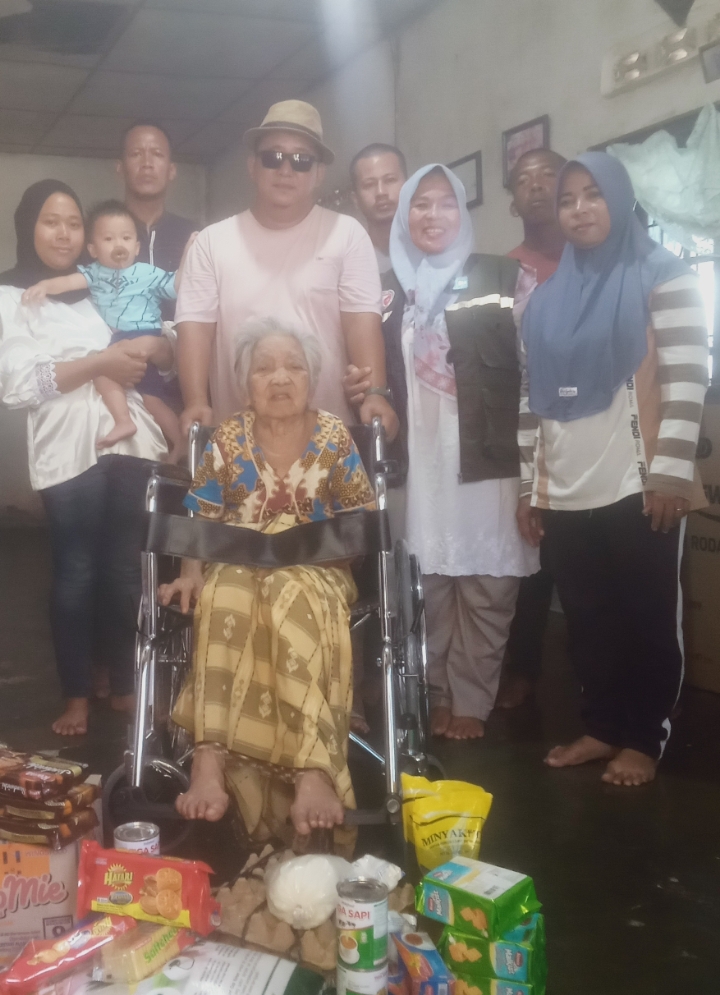 Dalam kesempatan itu, Yayasan Cahaya Hati Kemanusiaan menyerahkan kursi roda baru, tilam lipat empuk, serta paket sembako berisi beras, minyak goreng, gula, telur, susu, dan berbagai kebutuhan pokok lainnya.